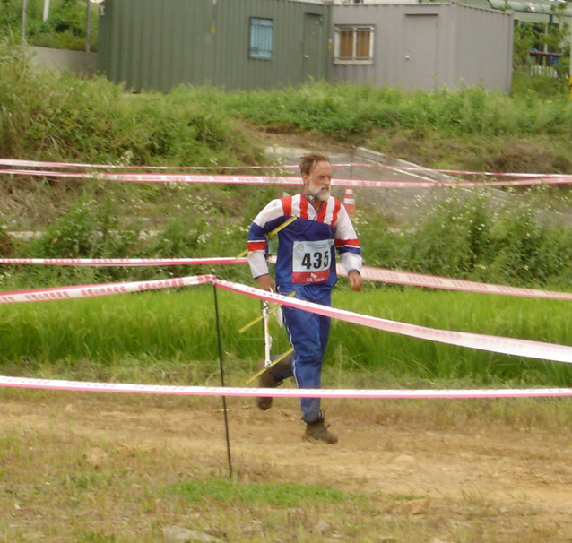 "The course was long and narrow, about three times as long as it was wide," Hennigan explained. "The start was in the north and the finish was in the south. On the map, it was about three-fifths woods, but that was all marked dark green, which meant you couldn't get through it unless you could find a pathway. Fortunately, there were a few trails in there to make it doable. The rest was marked yellow, which turned out to be cultivated fields and drained rice paddies. There were roads on either side, so it became a matter of running down the road until you thought you were perpendicular to a transmitter, slogging to it through the mud, punching in and then running to one of the side roads, depending on where the next fox appeared to be. It wasn't just rice, there were other crops including some kind of cabbage. We couldn't avoid trampling the plants, but the farmers weren't yelling or coming after us."