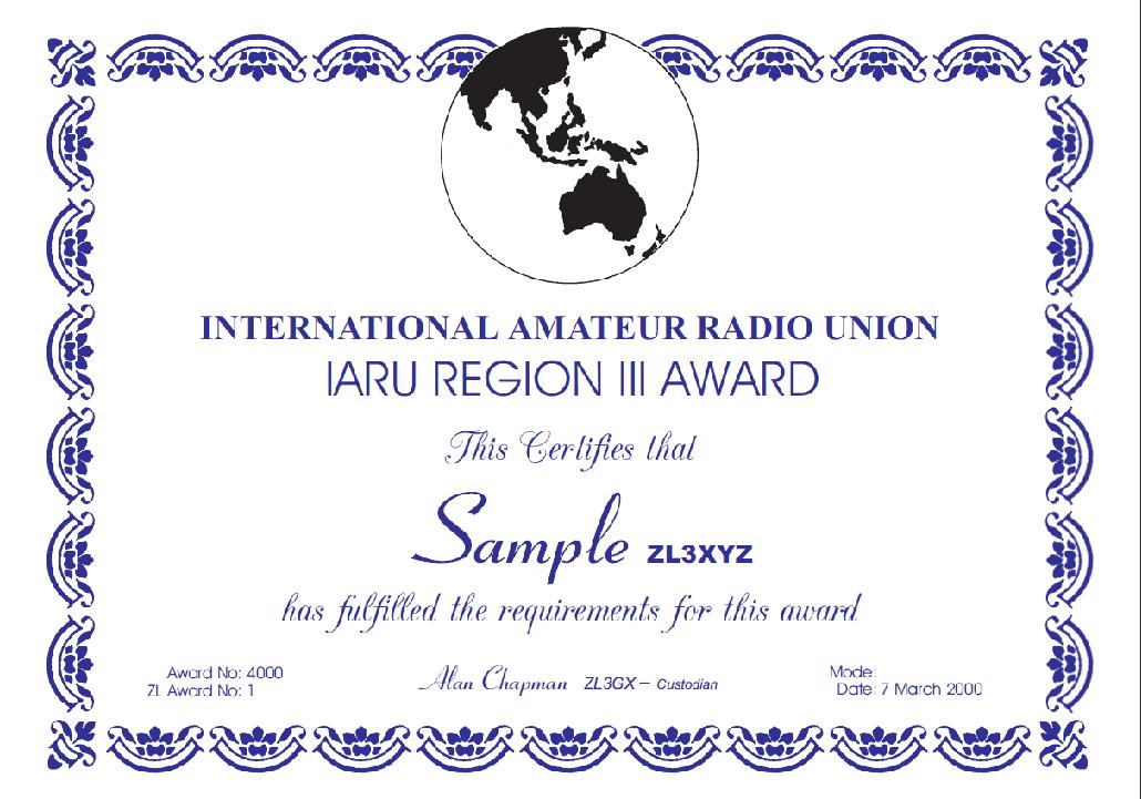 IARU Region 3 Operating Award