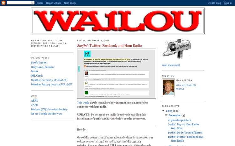 I received a lot of e-mails and comments regarding both columns, but I expected that "Twitter, Facebook and Ham Radio" would result in more than "A Wireless Dilemma." It was just the opposite. After writing 466 installments of Surfin', I should have learned by now to expect the unexpected.
